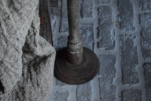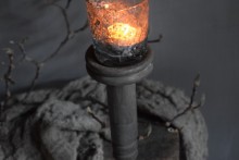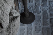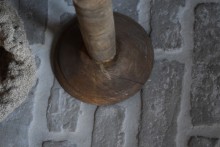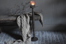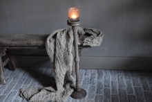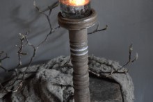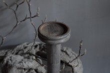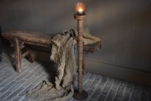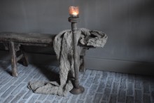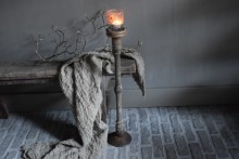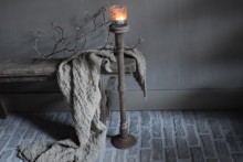 Vergrijsde oude houten vloerkandelaar, leuk met een windlichtje of stompkaars.Afmeting : Hoogte 74 cm x Doorsnede van de voet 15 cm...
