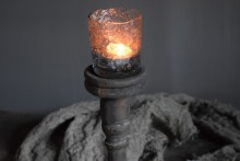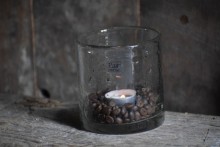 Transparant windlichtje  met een stoere omgevouwen rand en metalen schilfers in de kleur smoke.Deze windlichten worden met de hand gemaakt en kunnen onderling iets verschillen van afmetingen.Afmeting : Doorsnede 8 cmx Hoogte 6 cm ...