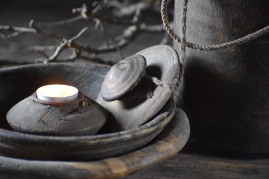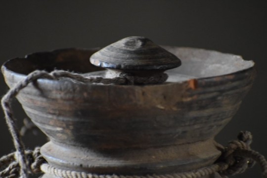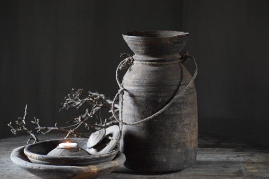 Hoge Nepalese pot met deksel.